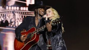Madonna’s son, David Banda Mwale Ciccone, also shared the stage. He accompanied his mother on guitar during “Mother and Father,” a deeply personal song from her 2003 album American Life.