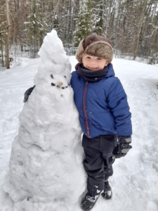 He would wrangle his coat on incorrectly, quarrel with his boots, and toss down his rucksack. He covered one eye with his hat half the time.When I tried to correct it, he would complain, “I’m fine.” “Snowmen don’t care what I look like.”