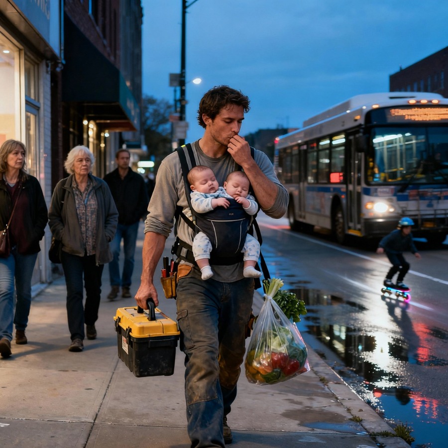 He was merely a tired dad walking home after a long, hard day. He held a toolbox in one hand. The metal corners were