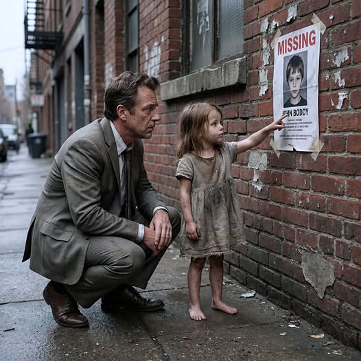 The millionaire was putting up posters on the street, desperate for the slightest clue about his missing son, when a little girl approached slowly,