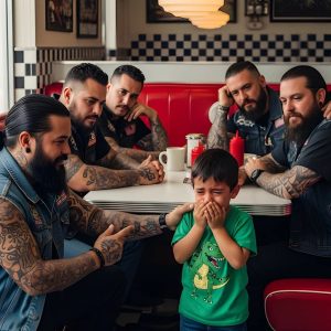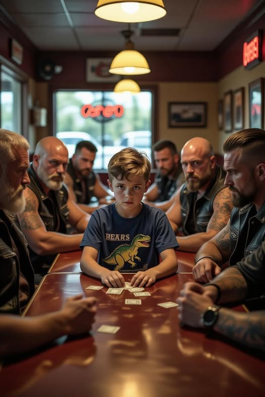 All conversations stopped. Fifteen veterans in leather vests stood frozen, staring at the little boy in a dinosaur T-shirt who had just asked us to commit murder as if he were asking for more salsa for his tacos.