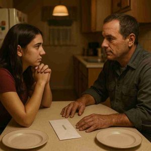 Back home that evening, we sat at the kitchen table, our dinner plates untouched. My father looked at me with the same patient eyes he always had when I was struggling to find my words. I slid the envelope across to him.