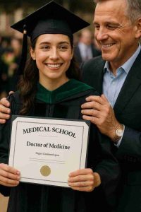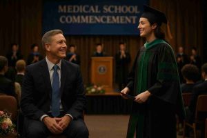 That morning, just hours before walking across the stage, I had received an email I hadn’t told him about. I’d been accepted to medical school. It was the dream I had been working toward quietly, afraid it might make him feel like I was leaving him behind. My father had poured his entire life into raising me—every overtime shift, every late night, every ache in his body was so I could stand in that moment. I didn’t want him to think I was walking away from the world he had built for us.