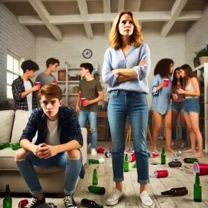 Then the noise: music blaring, kids shouting, laughing, spilling drinks on the furniture like it was theirs. Teenagers were everywhere—on the couch, on the floor, even dancing on the tables.