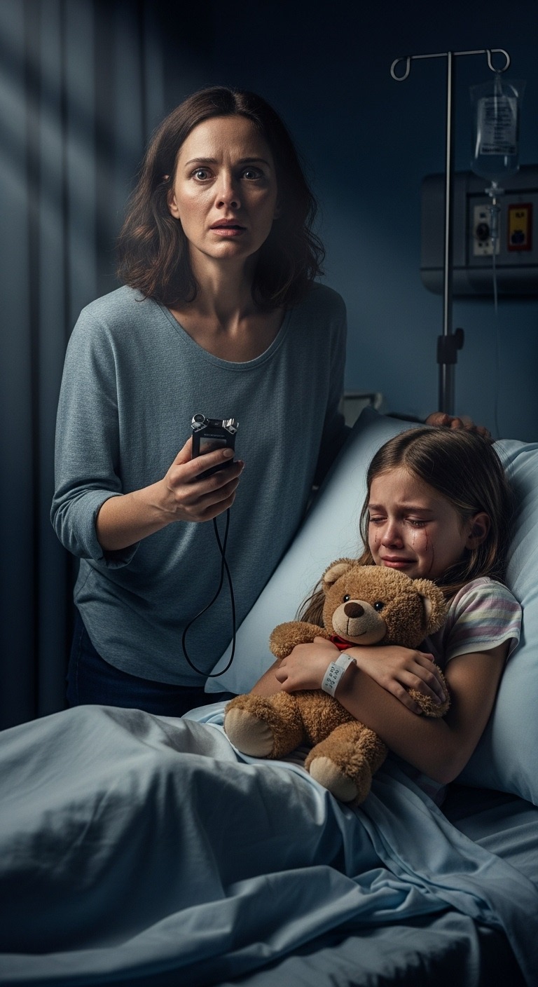 My 7-year-old daughter smiled faintly from her hospital bed. “Mom, this will be my last birthday.” I tried to comfort her, but she whispered, “Check the teddy bear under my bed… and don’t tell Dad.” Inside was a tiny recorder. When I pressed play, I froze.