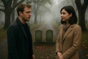 “Daniel meets Isabel at the cemetery — two strangers connected by the same heartbreaking loss.”